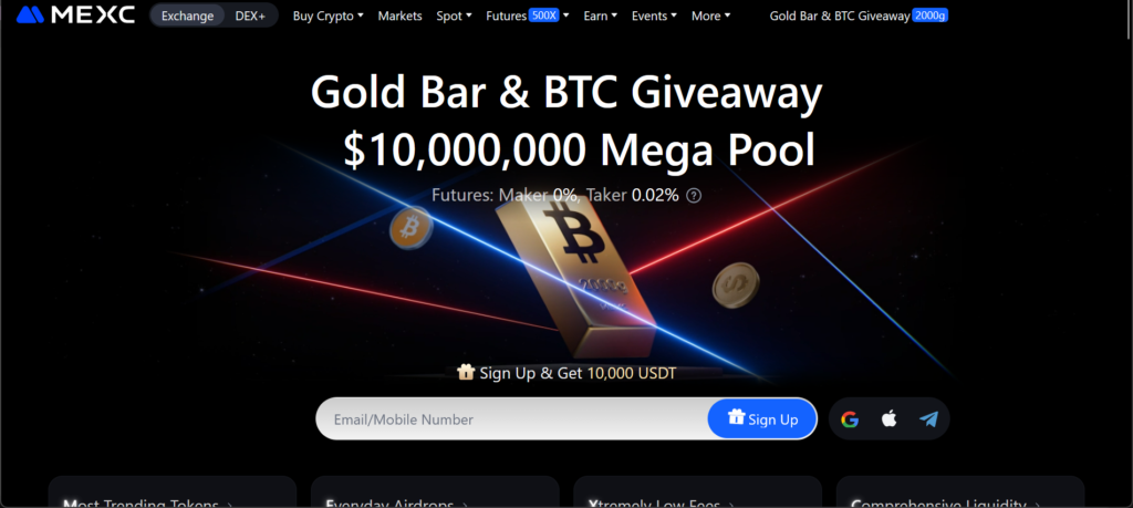 On the surface, mexc.co appears to be a sleek, modern trading platform offering: