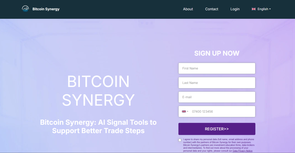 Bitcoin-synergy.io presents itself as a cutting-edge crypto trading platform, boasting AI-driven algorithms, guaranteed profits, and endorsements from tech luminaries like Elon Musk. The website is polished, filled with buzzwords like “blockchain synergy,” “automated trading,” and “financial freedom.” But this veneer of professionalism is precisely what makes it so dangerous.