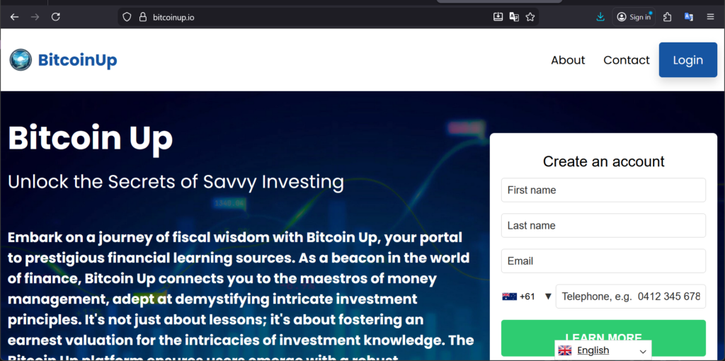 The platform advertises big returns, minimal effort, access to “insider” trading services. Bitcoin Up’s website and review listings aim to portray a high-end broker. - Onboarding / Initial Deposit