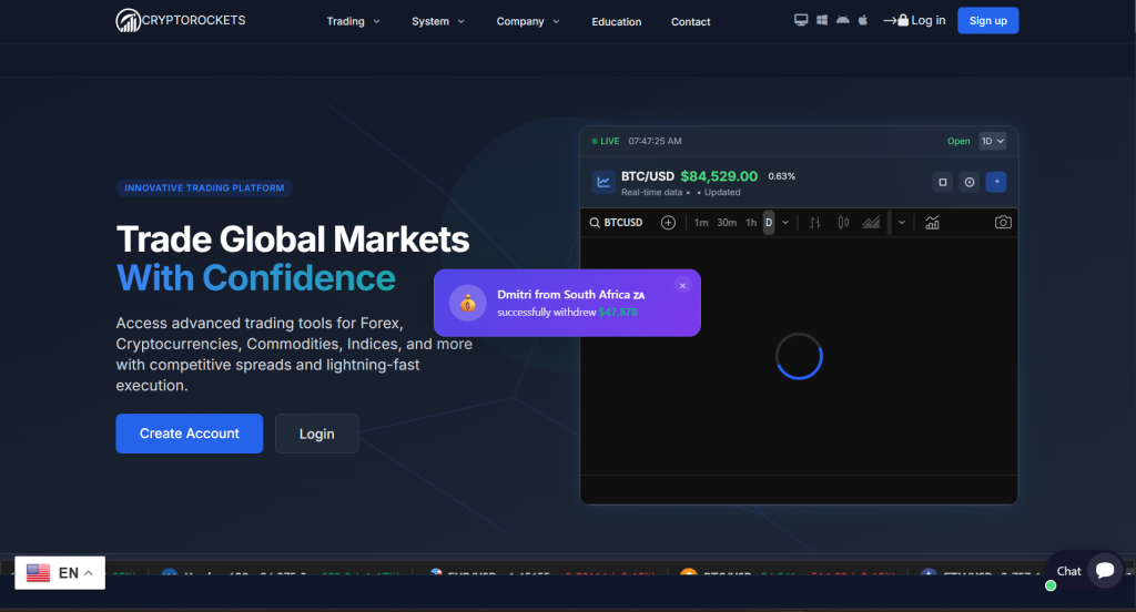 Crypto-Rockets.net appears to promote itself as a cryptocurrency investment or trading service, offering opportunities such as digital asset trading, automated features, or plan-based investments. The platform presents itself professionally, with a modern layout and easy onboarding for new users.