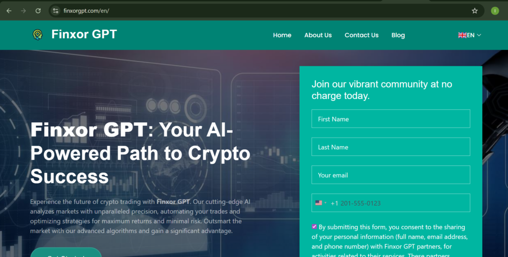 Finxorgpt.com, a site boasting about using advanced algorithms to deliver guaranteed crypto profits. At first glance, its professional design and futuristic promises appear convincing.