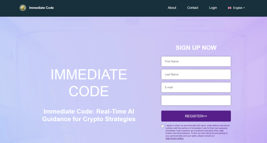 According to its website, Immediate Code (“immediate-code.com”) presents itself as a high-tech trading platform combining an AI engine, algorithmic signal generation, and instant access to crypto markets. It claims features like “adaptive AI engine that continually improves itself with lightning-fast data capture” and “evidence-based recommendations” for traders. Immediate Code On the surface, it sounds like a sophisticated software tool enabling individuals to profit from automated trading performance.