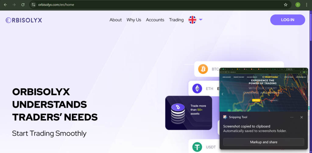 Orbisolyx.com presents itself as a professional online trading platform claiming to offer lucrative investment opportunities across various financial markets, including forex, cryptocurrencies, commodities, and indices. The website boasts a sleek interface, advanced trading tools, and promises of high returns within short periods. It targets individuals seeking quick profits, often appealing to those unfamiliar with the risks involved in online trading.