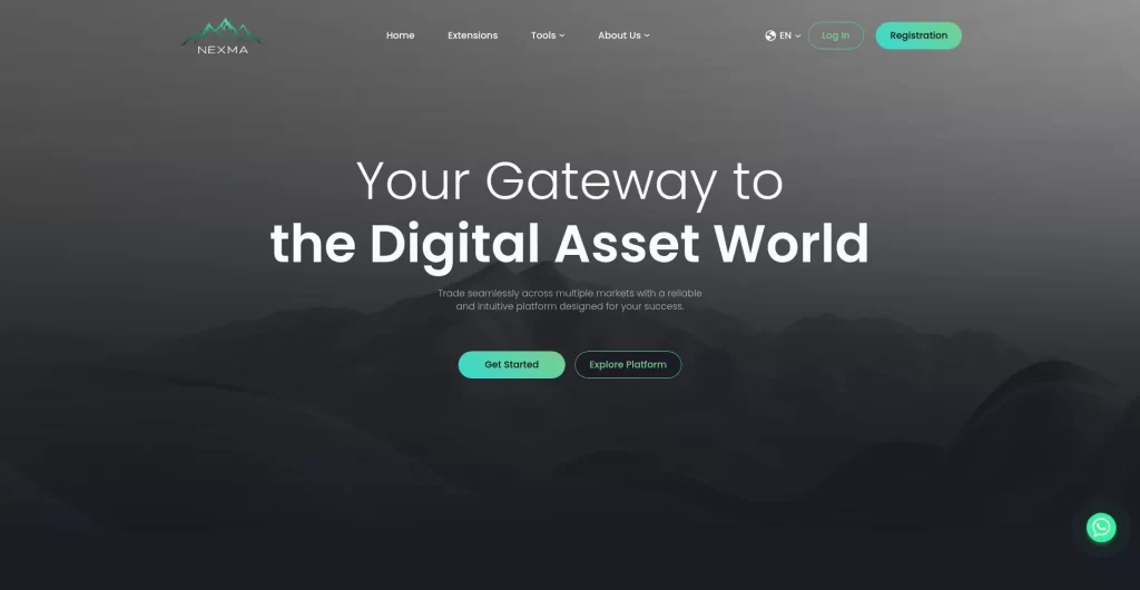 The Nexma.pro website markets itself as an all-in-one solution for online traders. Its homepage features flashy visuals, confident messaging, and promises of financial success through advanced technology.