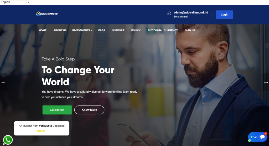 Wide-Diamond.ltd presents itself as a company dealing with diamonds and diamond-related investments or trading. While the exact corporate registration, physical address, and regulation status are obscure or hidden, the promise to customers is roughly this: purchase access to premium diamonds, or invest funds, and receive high returns due to value appreciation of the stones or trade profits.